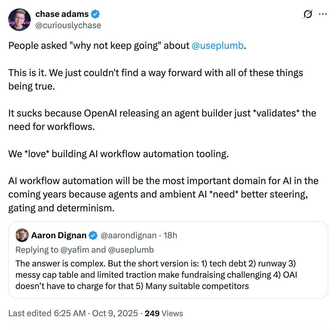 This was a tough decision, but Aaron (co-founder) and I decided to shutdown Plumb.